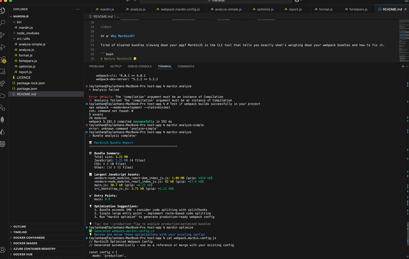 I was tired of guessing. So I built MardinJS — a CLI tool that doesn’t just show you bundle sizes, but tells you exactly what to fix.