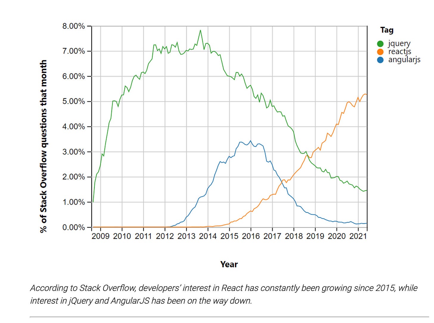 Because React is a dynamic and high-performance technology designed for an exceptional user experience. It’s widely adopted by top-tier companies due to its efficiency and scalability. In fact, performance is so critical that Amazon found that a 100-millisecond delay in page load time could cost them 1% in sales, and a one-second slowdown could result in a staggering loss of $1.6 billion annually.